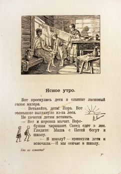 Всеволод Александрович Флеров — русский педагог и литератор, деятель народного образования. В профессиональной среде известен как автор выдержавшего 41 издание «Нового русского букваря» (1906). "Ясное утро" — это первая после букваря книга для классного чтения. Книга содержит рисунки, прописи и тексты для чтения.