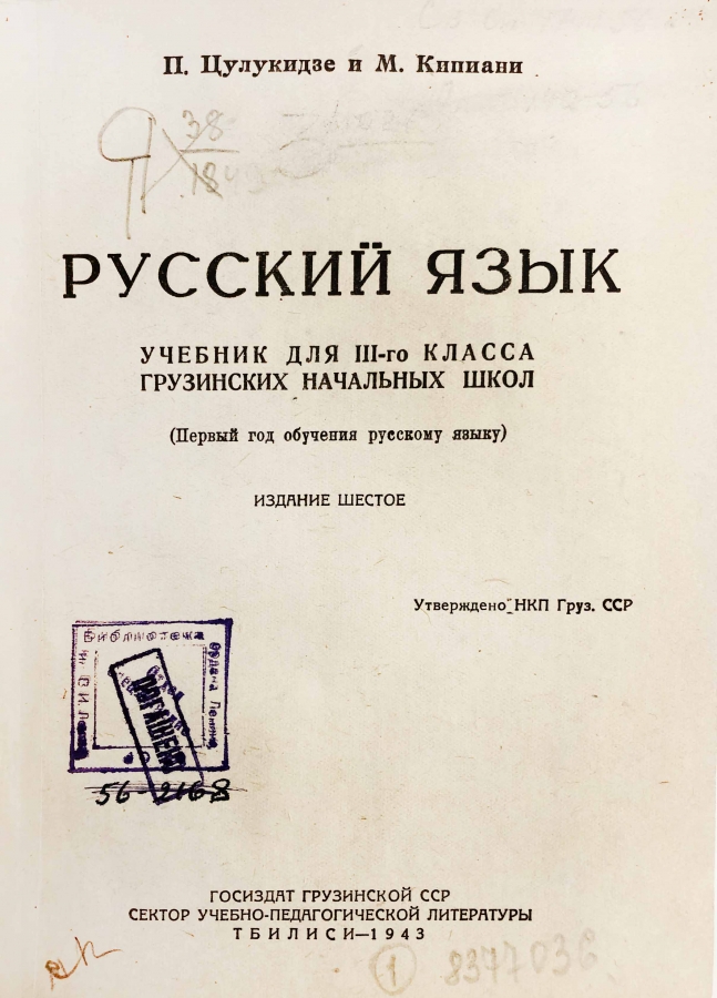 Учебник для 3-го класса грузинских начальных школ. Первый год обучения русскому языку. Утверждено НКП Грузинской ССР.