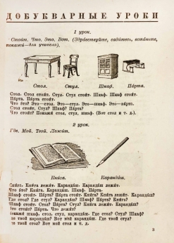 В учебнике есть разбор каждой буквы русского алфавита, слова, предложения и упражнения по каллиграфии и несложные тексты.