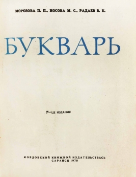 Учебное пособие для начальной школы на мордовском языке. Книга, по которой первоклассники могли учиться читать и писать. Как и большинство букварей все начинается с простых букв с картинками, которые постепенно переходят в слоги, слова, предложения и несложные тексты.