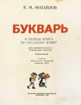 Букварь и первая книга по русскому языку для первого класса чувашской школы. Богато иллюстрированное издание.