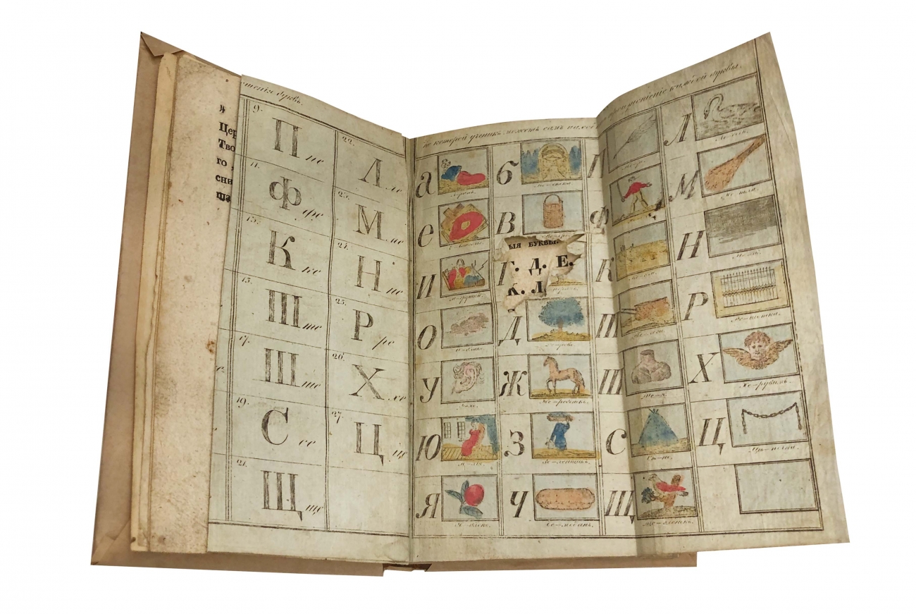 В азбуке все начинается с молитвы для начала чтения, потом представлена азбука на раскладывающихся листах с цветными иллюстрациями. В книге также напечатаны десять заповедей, молитвы, нравоучительные правила, правила грамматики, полезные советы для детей, правила письма пером, детские повести и притчи.