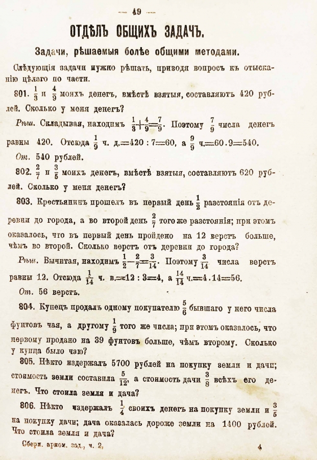 Книга "Сборник арифметических задач" Вторая часть. Теория дробей и общие правила