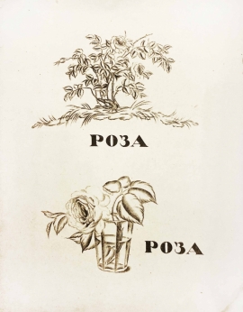 Оформил «Розовую азбуку» Владимир Михайлович Конашевич, его иллюстрации — это 36 вкрапленных в текст рисунков животных и растений, сельских пейзажей и полевых работ, школьных будней и детских игр. Встречаются рисунки и к пословицам, поговоркам, присказкам.