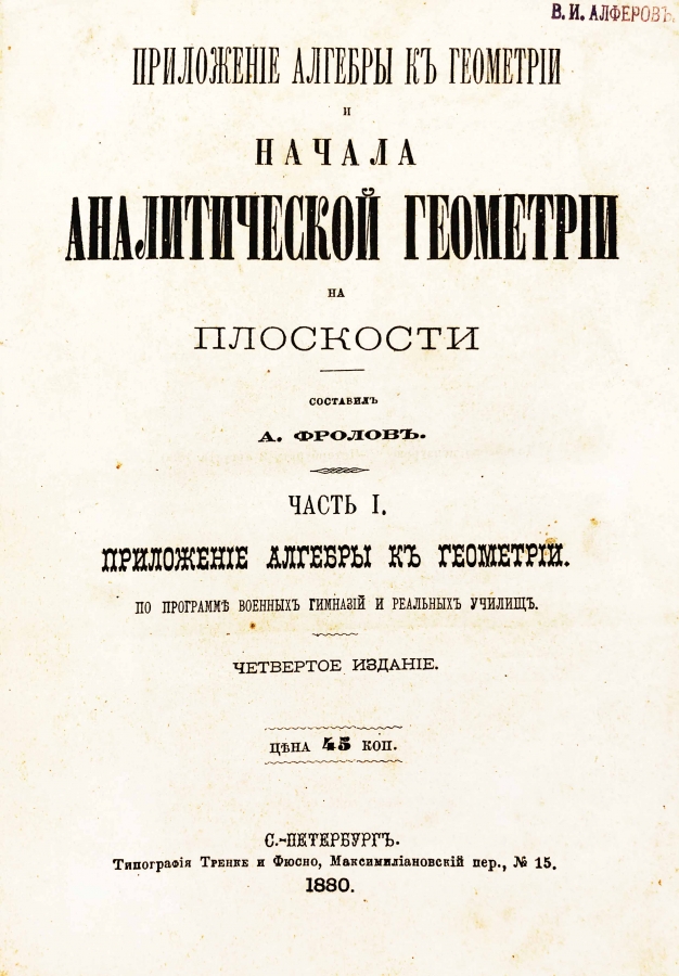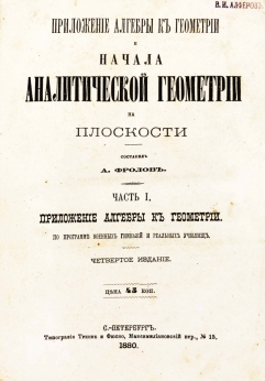 Фролов А. Ф Приложение алгебры к геометрии и начала аналитической геометрии на плоскости