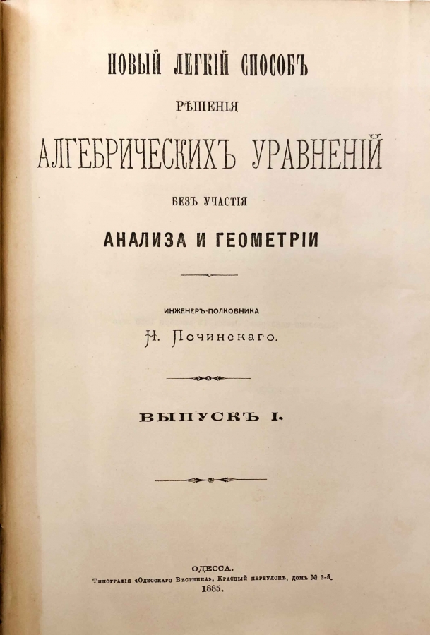Н. Починский Новый легкий способ решения алгебраических уравнений без участия анализа и геометрии