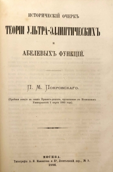 Покровский П. М. Исторический очерк теории ультраэллиптических и абелевых функций