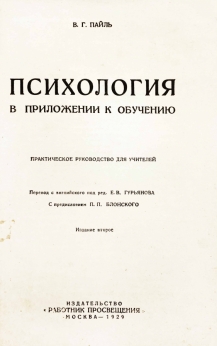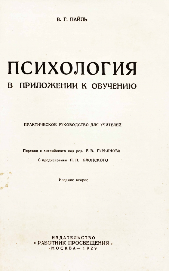 Издательская шрифтовая обложка. Есть небольшие пятна на обложке. 2-е изд. Перев. с англ. под ред. Е В. Гурьянова. С предисл. П. П. Блонского.