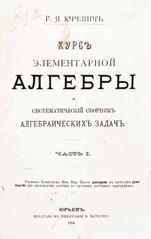 Книга "Курс элементарной алгебры и систематический сборник алгебраических задач" Часть 1