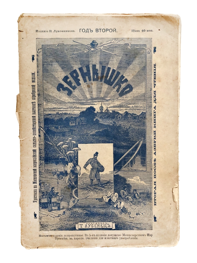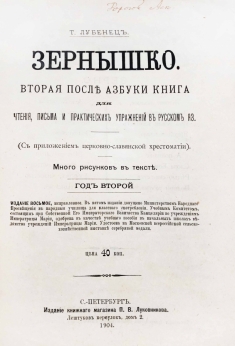 Вторая после азбуки книга для чтения, письма и практических упражнений в русском языке. С приложением церковно-славянской хрестоматии. Множество черно-белых рисунков в тексте.