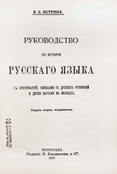 Руководство по истории русского языка с хрестоматией, снимками с древних рукописей и с двумя картами в красках. 2-е изд.