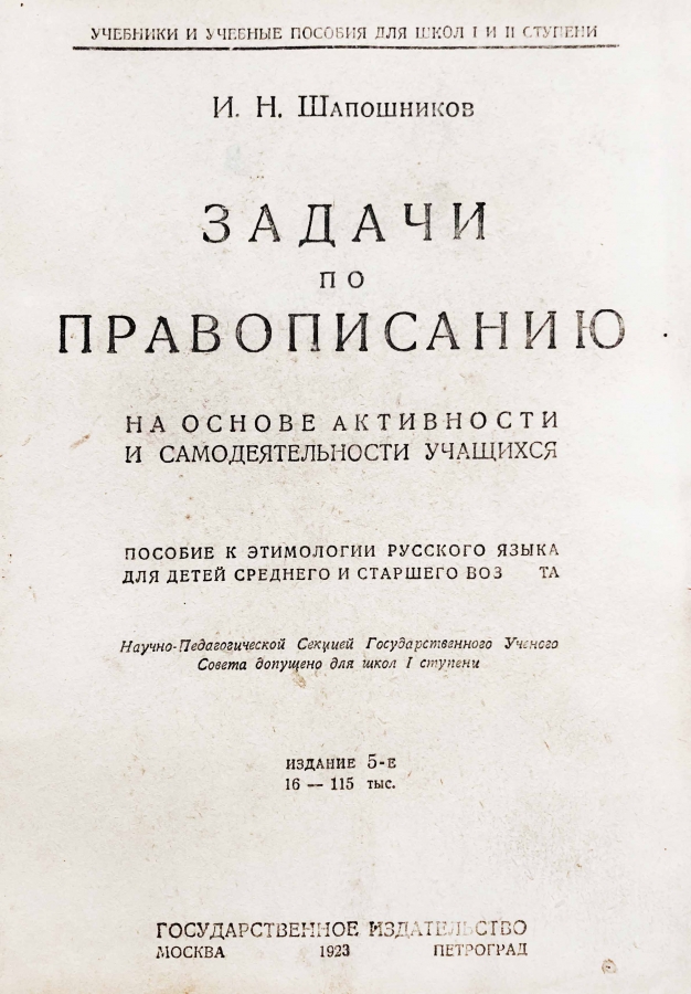 Задачи по правописанию на основе активности и самодеятельности учащихся. Шапошников создал несколько ценных методических пособий для учителей, которые выдержали более 20 изданий. Кроме учебников Шапошников выпустил много цветных наглядных пособий по развитию письменной и устной речи.