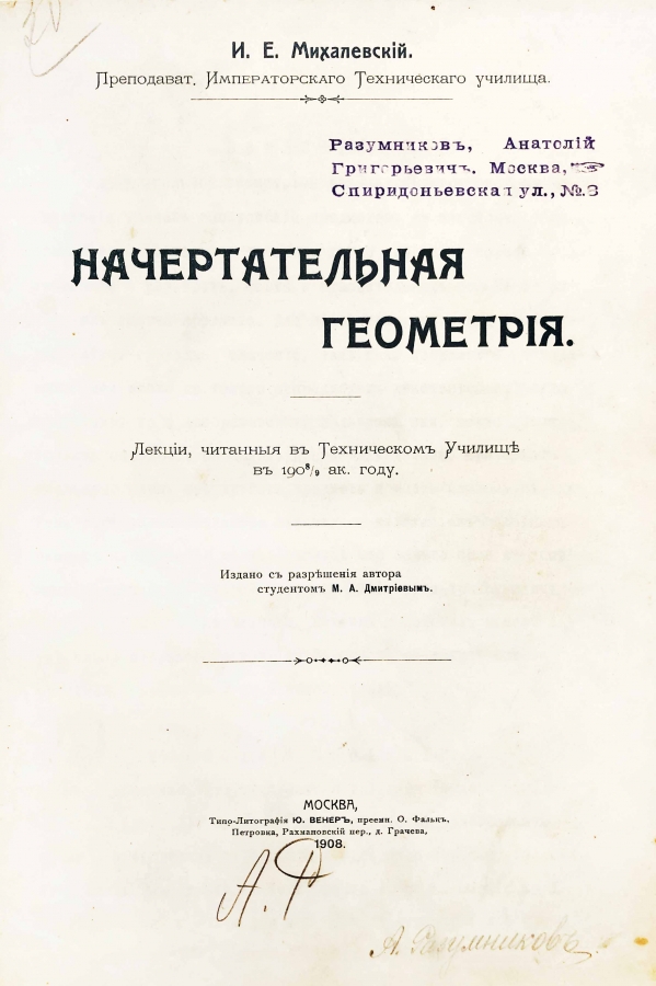Лекции прочитанные в Техническом училище в 1908-09 году. Издано с разрешения автора студентом М. А. Дмитриевым.