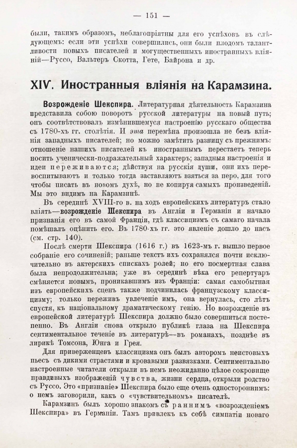 Главное внимание уделено объяснению хода развития новой русской литературы, условий и причин, которые привели ее к творчеству Пушкина. Сравнительно подробно разработаны биографии главных русских писателей: развитие их творчества, душевный облик каждого как человека и представителя царской эпохи.
