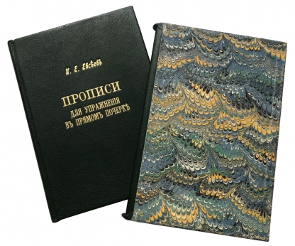 Издательская обложка. Цельнокожанная папка для книги с золотым тиснением. Футляр. Редкие временные пятна на страницах.