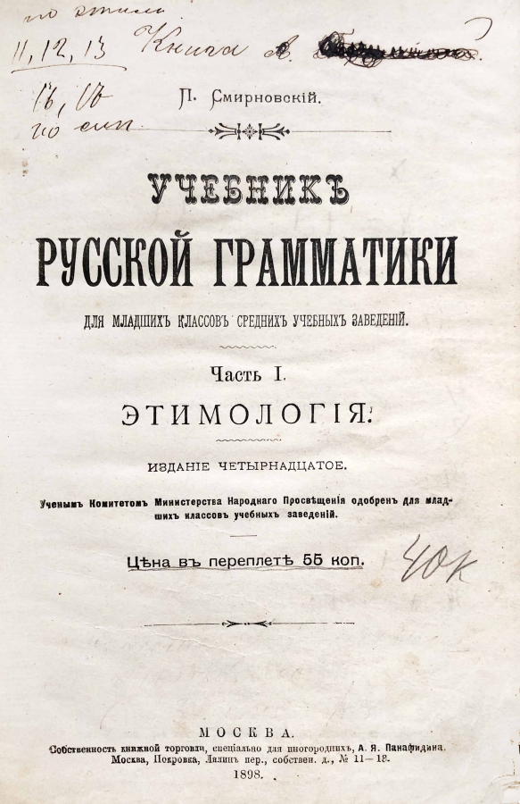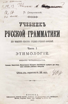Учебник русской грамматики для младших классов средних учебных заведений.