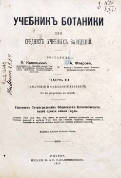 Учебник ботаники для средних учебных заведений. Учебник составили В. Капелькин, преподаватель Александровского института и А. Флеров приват-доцент Московского университета.