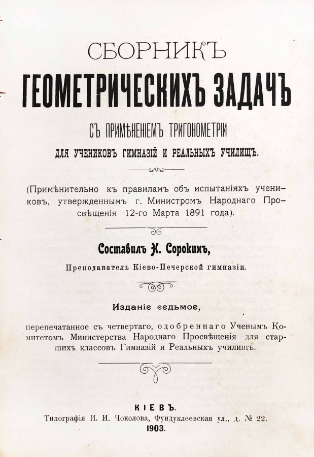 Сборник геометрических задач с применением тригонометрии для учеников гимназий и реальных училищ.