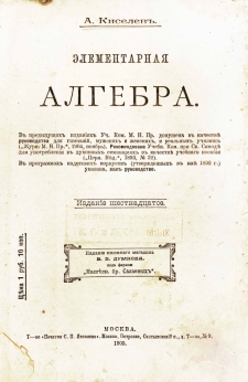 «Элементарная алгебра» — один из трех классических учебников А. П. Киселева, по которым изучали математику многие поколения школьников. (остальные два учебника: «Систематический курс арифметики для средних учебных заведений» и «Элементарная геометрия»).