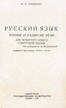 Учебник русского языка для 4 класса удмуртской начальной школы. Черно-белые иллюстрации.
