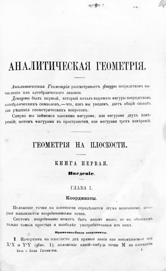 Учебник известных математиков Брио и Буке содержит две части. В первой рассматривается геометрия на плоскости, а во второй — геометрия в пространстве.