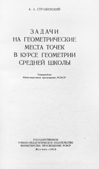 В книге помещены задачи на геометрические места в соответствии с программой по геометрии для средней школы. Кроме известных задач, автором составлено некоторое число оригинальных задач. Изложение материала построено так, что при желании каждый учитель может легко расширить круг задач на геометрические места, комбинируя различные задачи, помещённые в настоящей книге.