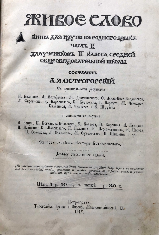 В предреволюционные годы появилось много работ, посвященных искусству звучащего слова. Многие из них имели в виду не только профессиональное искусство, но и школьное выразительное чтение. Были работы и специально посвященные школе. Из них наиболее интересна книга "Живое слово" А.Острогорского. Для всех, кто хочет вырастить интеллигентного, тонко чувствующего человека, научить читать по-настоящему, для души.