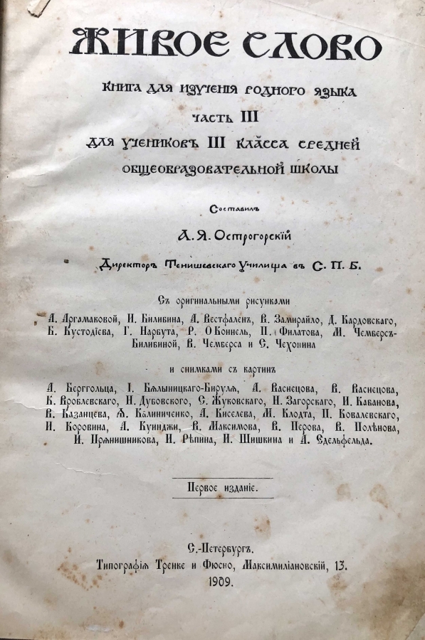 В предреволюционные годы появилось много работ, посвященных искусству звучащего слова. Многие из них имели в виду не только профессиональное искусство, но и школьное выразительное чтение. Были работы и специально посвященные школе. Из них наиболее интересна книга "Живое слово" А.Острогорского. Для всех, кто хочет вырастить интеллигентного, тонко чувствующего человека, научить читать по-настоящему, для души.