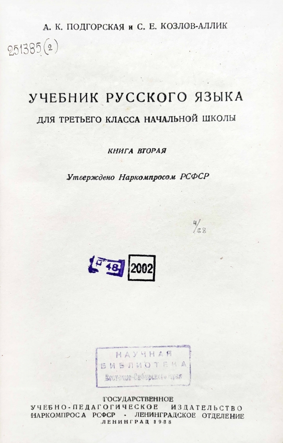 Учебник русского языка для 3 класса эвенкийской начальной школы.