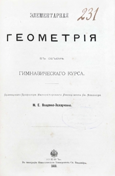Книга "Элементарная геометрия в объеме гимназического курса"