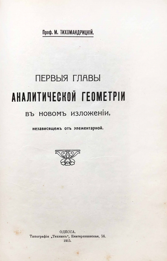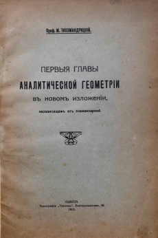 Книга "Первые главы аналитической геометрии" в новом изложении, независящем от элементарной