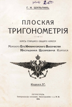 Шульгин Г. И. Плоская тригонометрия. Петроград: Екатерининская типография. 1916 год. Изд. 5-е. 22,5 см.