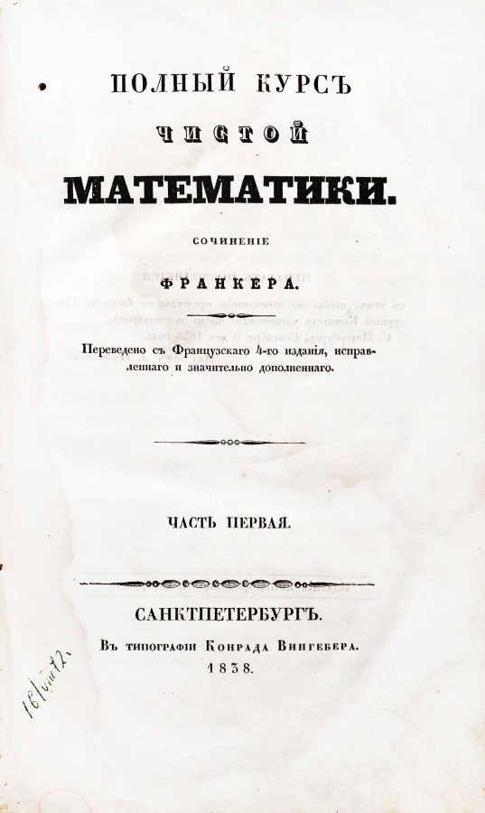 Франкер Луи Бенжамен (1773-1849) — французский математик и педагог, автор ряда учебников по математическим дисциплинам, член-корреспондент Петербургской академии наук.