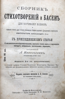 Сборник стихотворений и басен для заучивания наизусть и список книг для чтений учеников Нижегородского дворянского института императора Александра II-го. Со статьей "О воспитательно-образовательном значении чтения книг и заучивания наизусть избранных поэтических образцов". Книга составлена А. Никольским, преподавателем русского языка. Заучивания наизусть образцовых произведений отечественной словесности и выразительное их произношение есть одно из самых полезных практических занятий. Книга представляет историческую и культурную ценность!