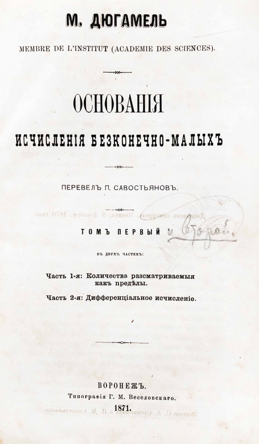 Книга "Основания исчисления бесконечно-малых" Том 1