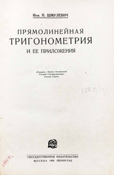 Книга "Прямолинейная тригонометрия и ее приложения"