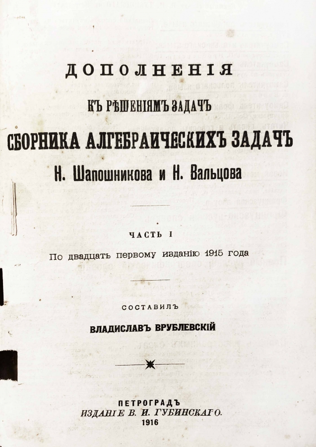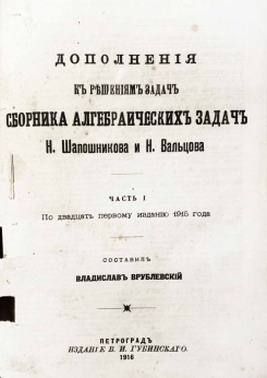 Полное название: Дополнения к решениям задач. Сборника алгебраических задач Н. Шапошникова и Н. Вальцова. Часть 1. По двадцать первому изданию.