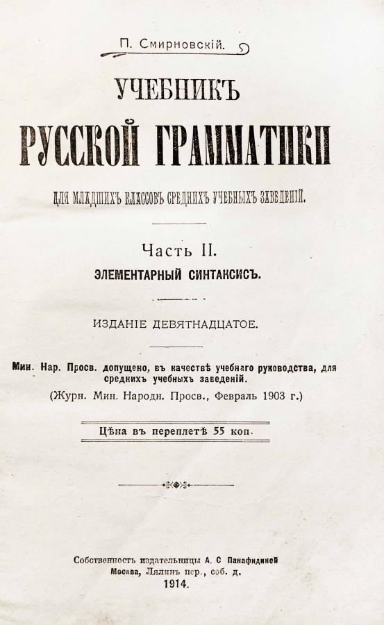Предлагаемый «Синтаксис» это вторая часть «Учебника русской грамматики», первая часть которого заключает в себя «Этимологию».
