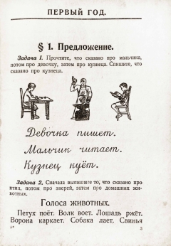 Учебник для первого и второго года обучения. Стабильный довоенный учебник русского языка. Был в последствии заменен двумя учебниками Костина. Подходит для послебукварного периода обучения.