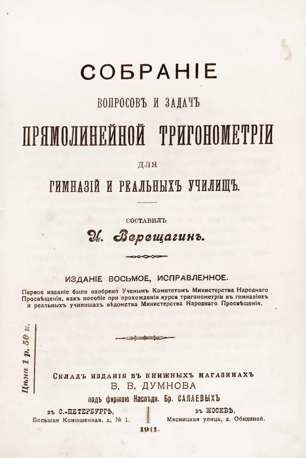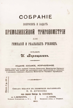 Книга "Собрание вопросов и задач прямолинейной тригонометрии для гимназий и реальных училищ"