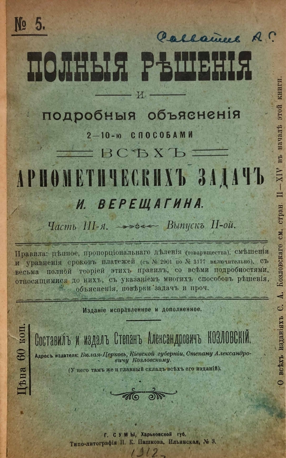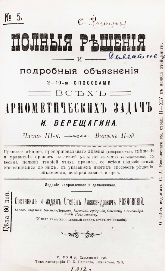 Сумы: Издание С. А. Козловского. Типо-литография К. М. Пашкова