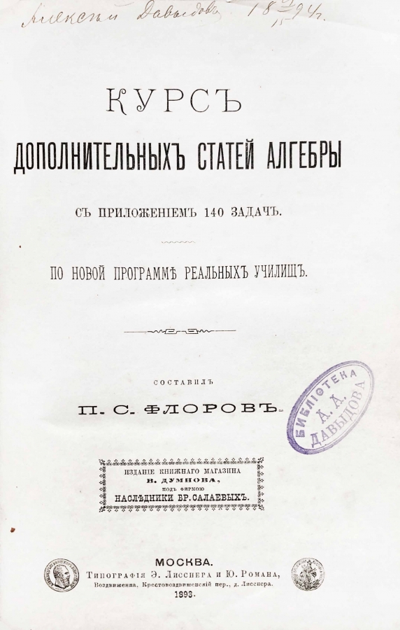 Москва: Издание книжного магазина В. Думнова, под фирмою Наследники Братьев Салаевых