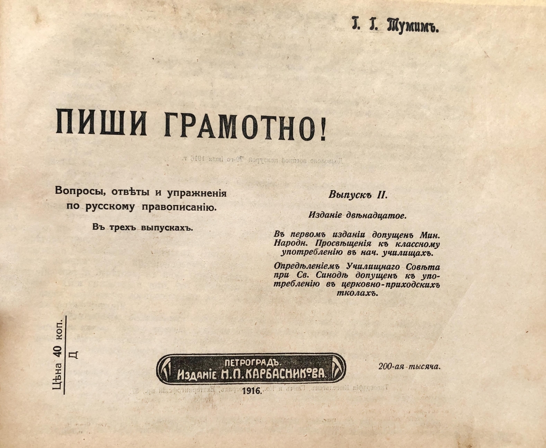 Книга с вопросами, ответами и упражнениями по русскому правописанию. Из предисловия: Ближайшим практическим результатом, которого, как показывает опыт, могут достигнуть ученики, пользующиеся настоящим пособием, следует считать безошибочное списывание текста, являющееся первым барьером на трудном пути к полному "орфографическому благополучию". Книга представляет историческую и культурную ценность!