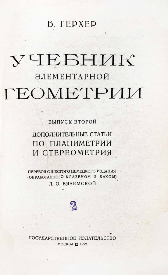 1) Герхер Б. Учебник элементарной геометрии