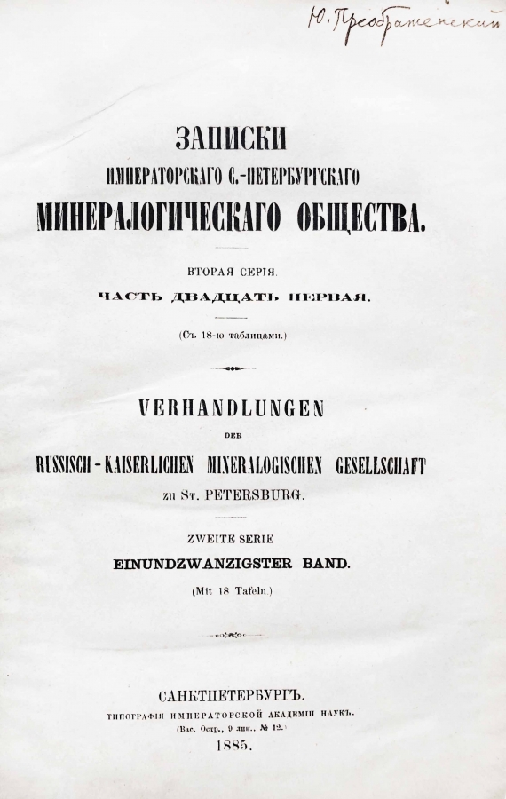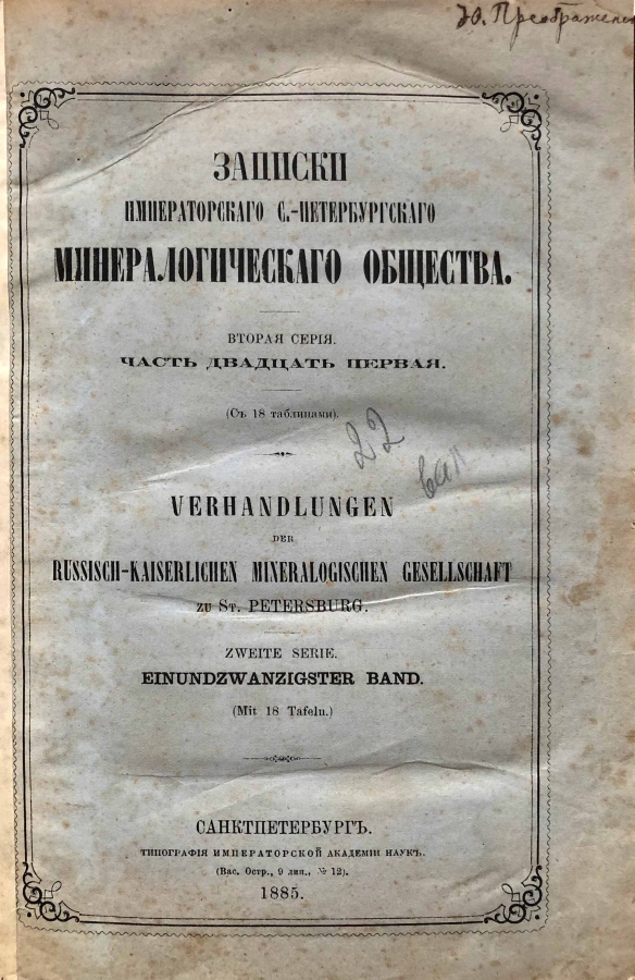 Книга "Записки императорского Санк-Петербургского минералогического общества" Вторая серия. Часть 22.