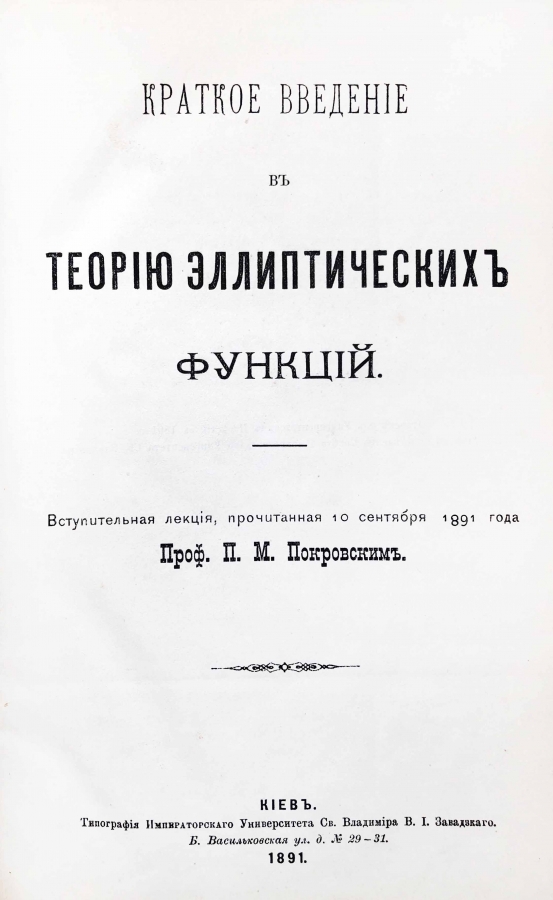 1) Покровский П. М. Краткое введение в теорию эллиптических функций