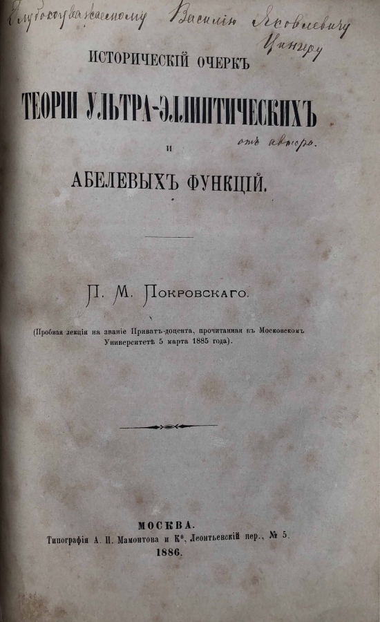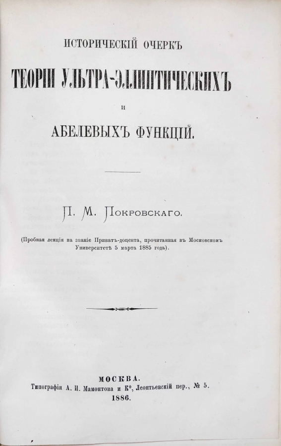 2) Покровский П. М. Исторический очерк теории ультраэллиптических и абелевых функций