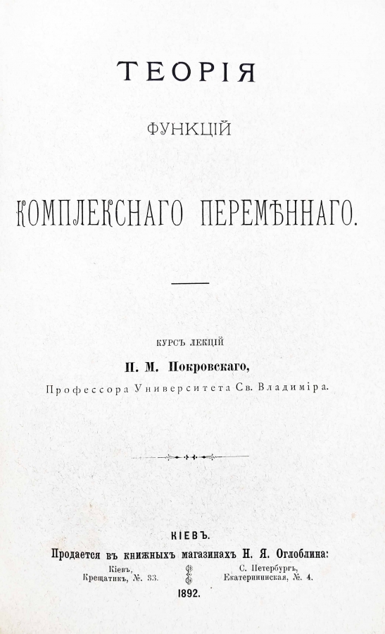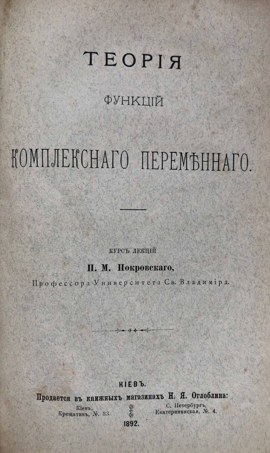 Киев: Типография Императорского Университета св. Владимира. Книжный магазин Н. Я. Оглобина. 1892 г.