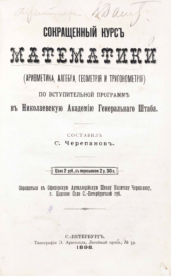 Сокращенный курс математики по вступительной программе в Николаевскую академию Генерального штаба.
