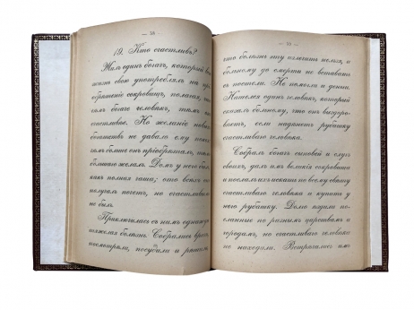 Цельнокожаный переплет с золотым тиснением.